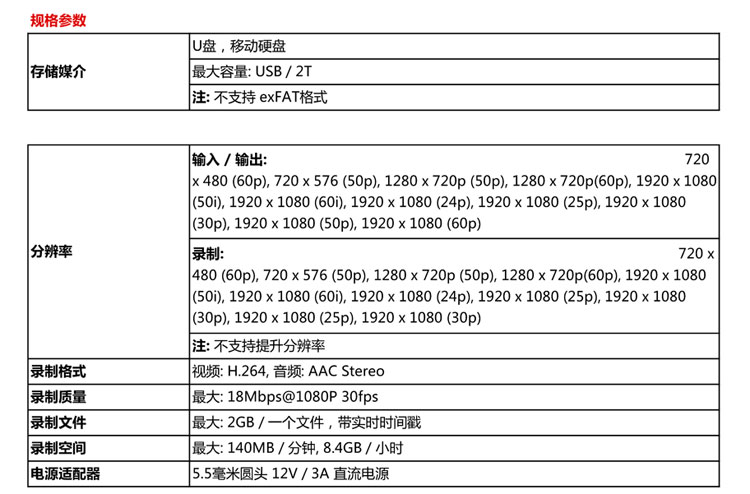 产品说明:朵视DS3030 具有SDI 和 HDMI 输入, 一键录制1080P高清视频,无需电脑。直接存储到U盘或者移动硬盘中保存,保存为MP4文件格式